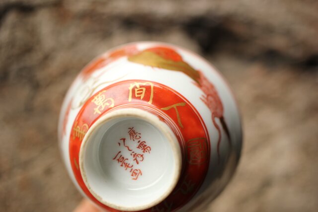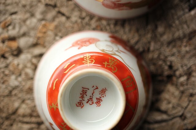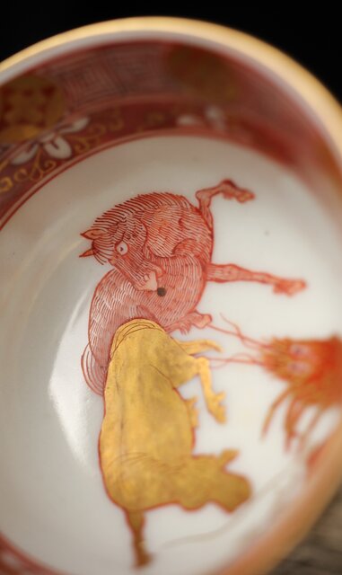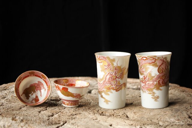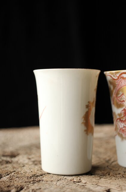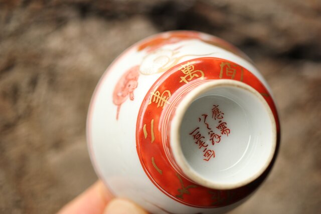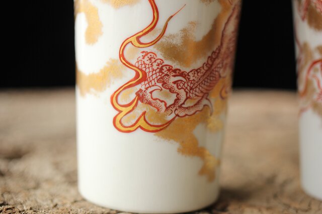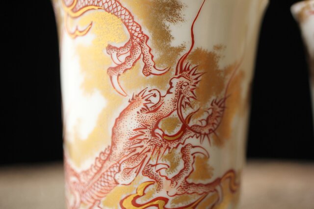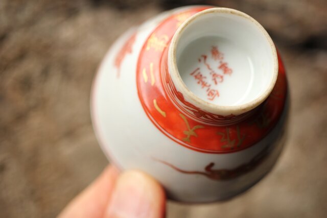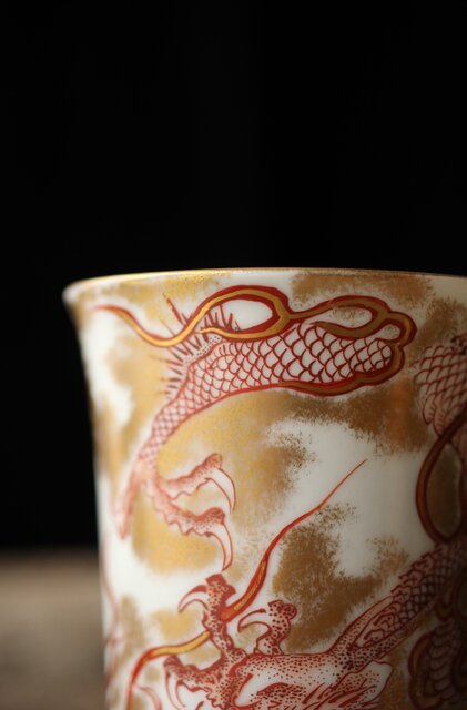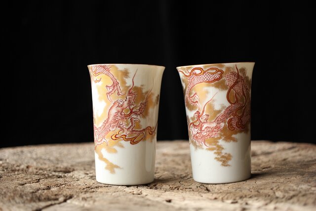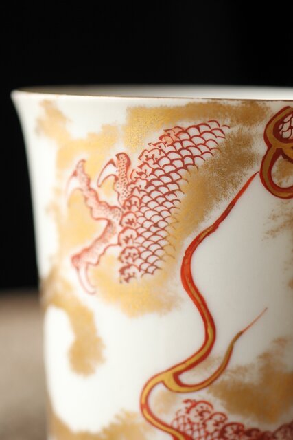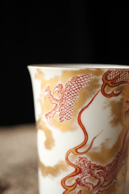 九谷赤絵名工 浅井一毫 雲龍ビール呑/盃 P429