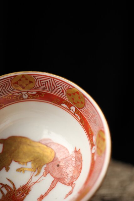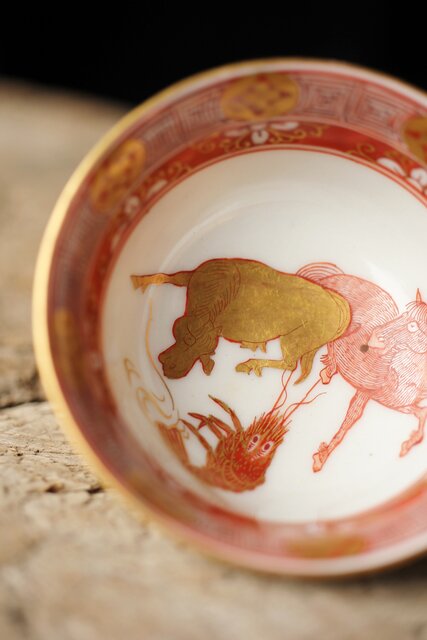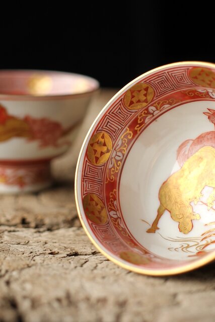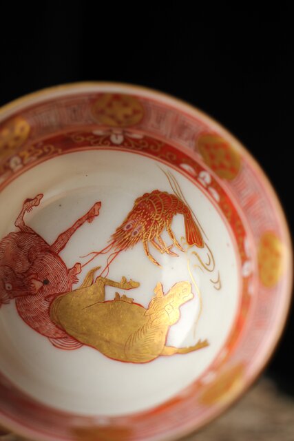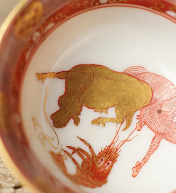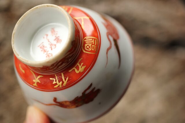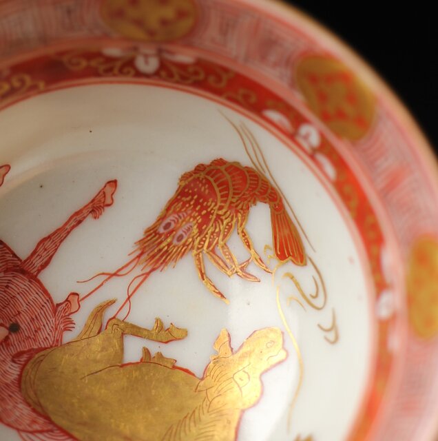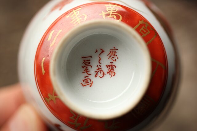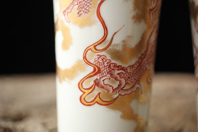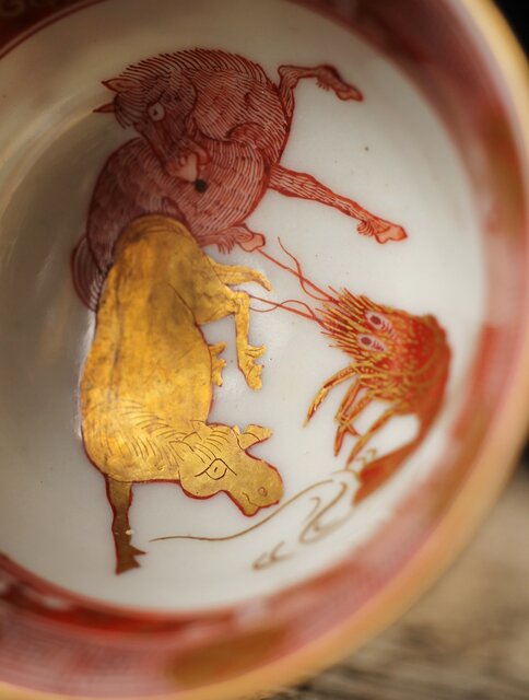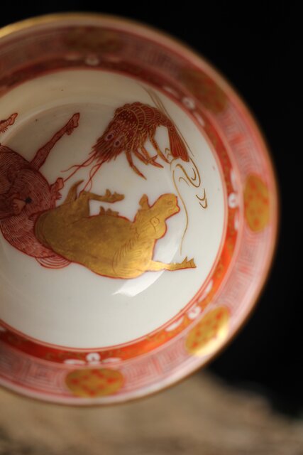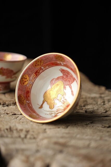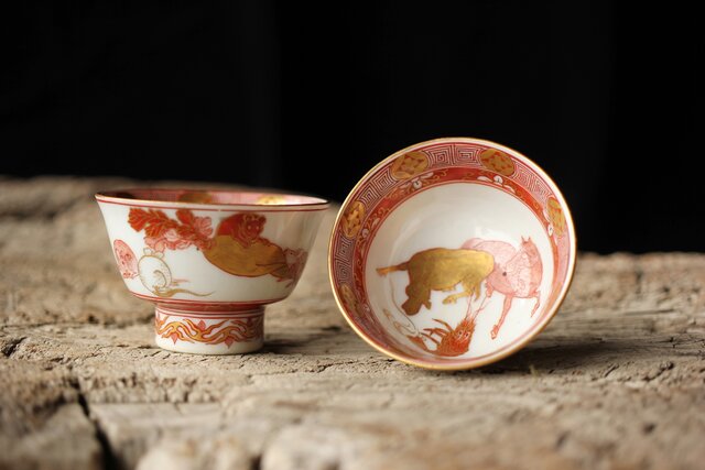 九谷赤絵名工 浅井一毫 雲龍ビール呑/盃 P429