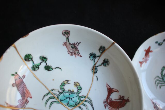 愛らしい蟹や魚の紋 こちらも金直しが見られます