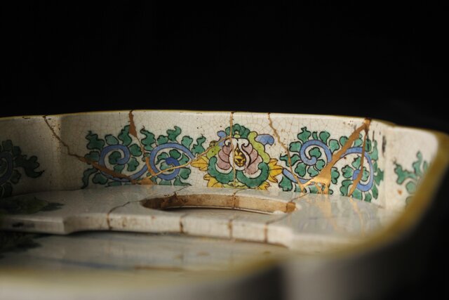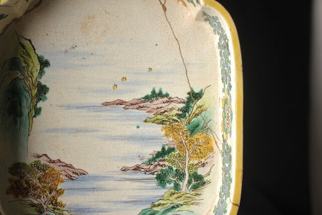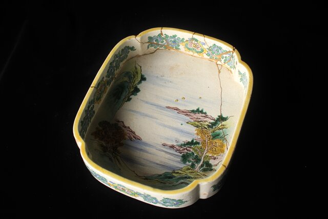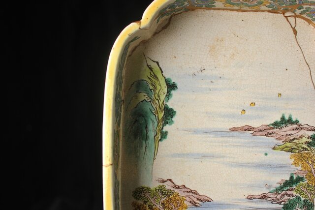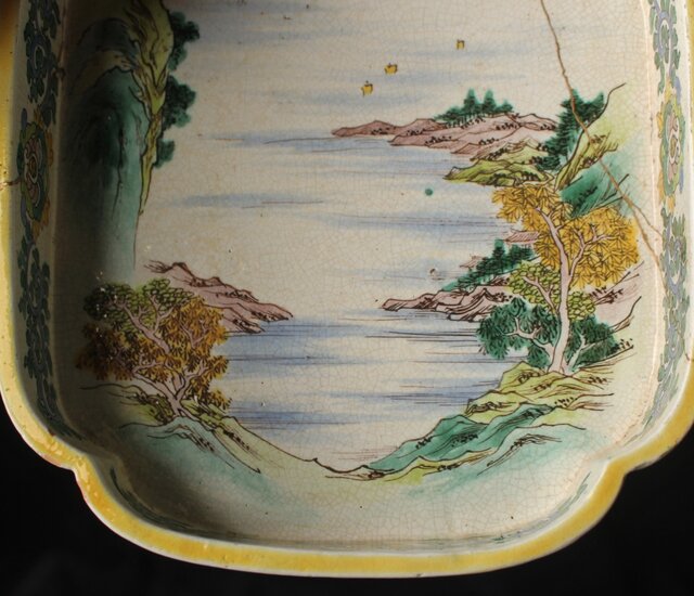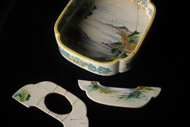 蓋は欠損 本体も補修だらけですが 大変稀少な粟生屋 源右衛門本人作とみて取れます