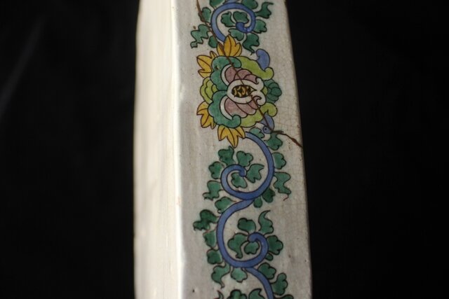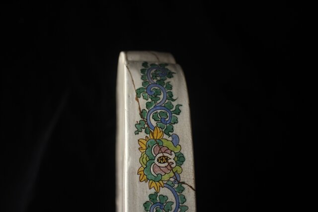 晩年に尽くした「粟生屋焼」楽焼系の軟陶で 素焼を強く焼きしめた上に白の絵の具で化粧掛け