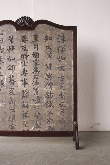 銀地の漢詩を張り付けた 洋物の衝立